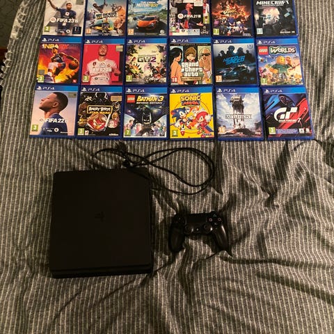 Playstation 4,två kontroller, 6 spel och hörlurar
