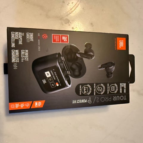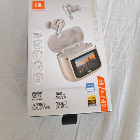 JBL trådlösa in-ear hörlurar i svart färg. Bra bas och ANC, och funkar helt felfritt. Väldigt fräscha och höga kvalitets hörlurar.