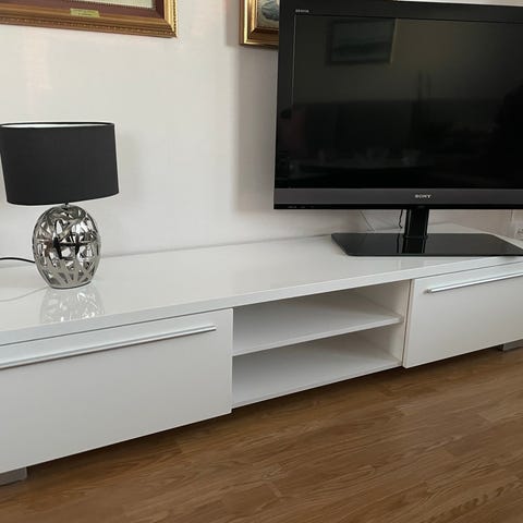 Säljer en vit TV-bänk i gott skick. Stabil och rejäl konstruktion med gott om förvaring.