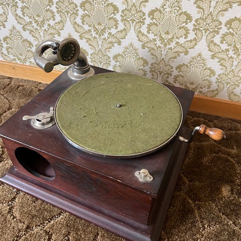 Trattgrammofon 1900 tal och massor av stenkakor