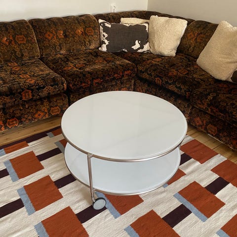 Marmorbord med krominramning, liten ytlig skada (se bild).