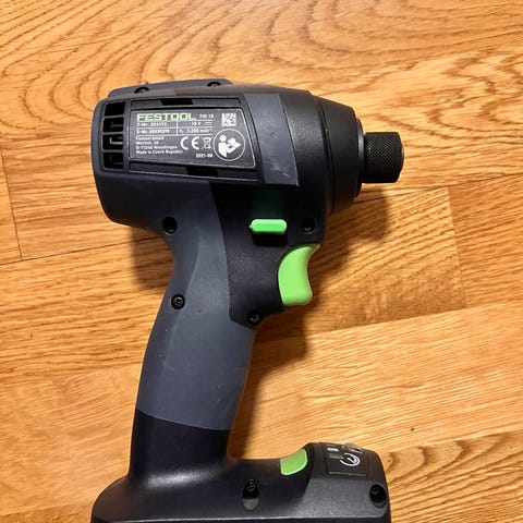 Hitachi varmluftspistol i grön färg med digital display på ovansidan av handtaget. Verktyget är nätanslutet med kabel och har pistolgrepp för bättre kontroll vid arbete. Passar för uppgifter som borttagning av färg, krympning av plast, formning av plastdetaljer och andra arbeten där kontrollerad varmluft behövs. Märkdata och inställningar framgår på etiketten och displayen på verktyget.