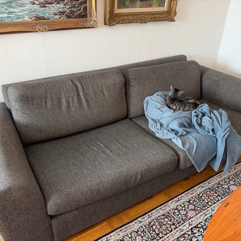 Soffa säljs på grund av flytt, väldigt bekväm och inga skador.