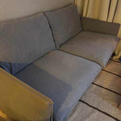Runt 1 år gammal. Klädseln behöver tvättas vilket är enkelt gjort. I jättefint skick och varsamt använt. Ikea har 10 års garanti, så den har många år att ge. Säljes pga. flytt till mindre boende.