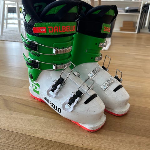 Dalbello DRS 60 JR alpinpjäxor i storlek 22/22.5 mondo point. Färgkombination vit och grön med röda sulor. Modellen är avsedd för juniorer och har fyra spännen samt powerstrap för att ge stabil passform. Lämpliga för alpin skidåkning på pist för barn/ungdomar som behöver en styv och stödjande pjäxa.
