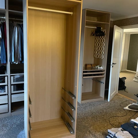 Säljer 4 garderobsstommar från IKEA PAX inkl inredning, färg: vitlaserad ekeffekt. Går att komplettera med mer inredning ur KOMPLEMENT. Samtligt i mycket fint skick, ca 2 år gammalt.