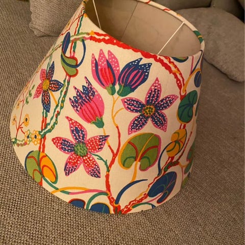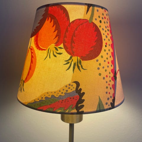 Svenskt Tenn Josef Frank bordslampa 2552 med mönstrad lampskärm Teheran
