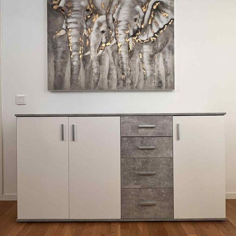 Byrå med 6 lådor, vit, 162x95 cm.