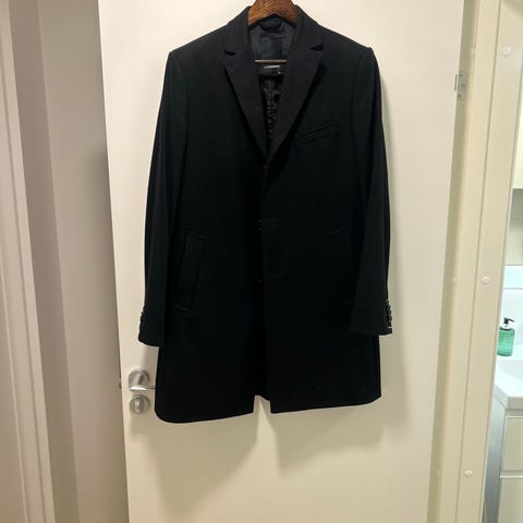 Dressmann rock för herr i storlek 50. Rocken är svart och tillverkad i ull. Modellen har hög krage, dragkedja och knäppning framtill, framfickor samt en bröstficka med dragkedja. Insidan är quiltad för extra komfort. Passar som ytterplagg under kallare säsonger.