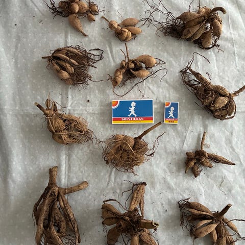På bilden finns 12 Dahliaknölar och jag skickar alla ifall någon inte tar sig.