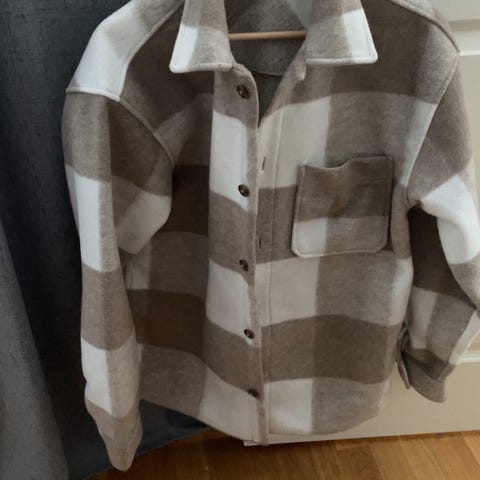 Brun och beige rutig jacka i fleece / teddy, med krage och bröstficka, runda avslut / se bild