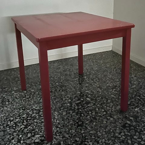 IKEA Mammut rött barnbord och rosa barnstol.