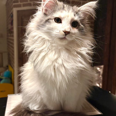 Min pappa är en maine coon med stamtavla och min mamma är också en maine coon utan stamtavla.