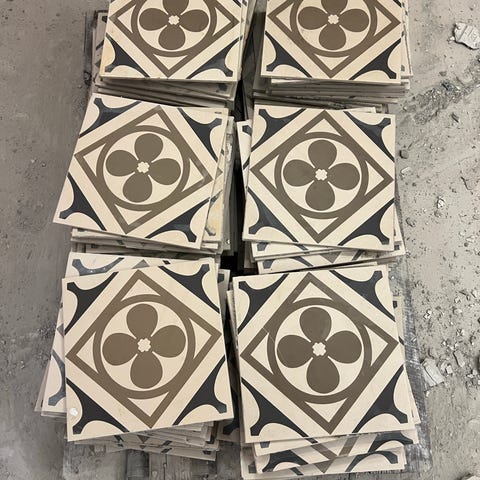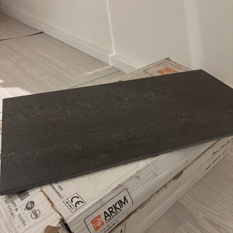 12 lådor med 32 plattor vardera. 3000kr för allt.