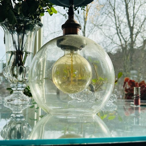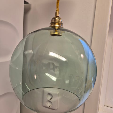 Taklampa i klotformad design Watt& vek 2000 -tal grön glaskupa.