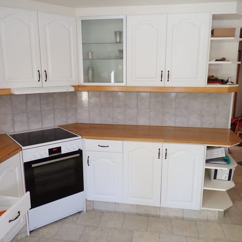 Köksskåp och vitvaror köksinredning vit och rostfri