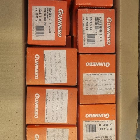 Spik inblandade dimensioner Gunnebo 100x3,4, pappspik, dyckert mm. Hämtas, skickas ej.