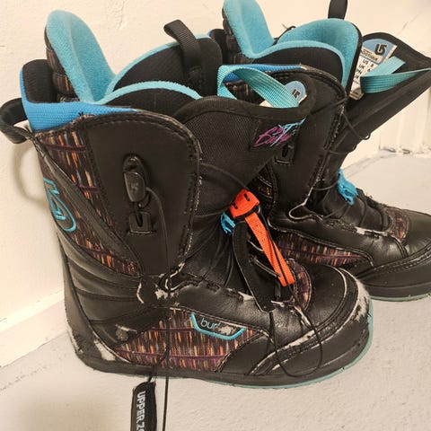 Thirtytwo snowboardboots i storlek EU 42 (US 9.0, MP 27.0). Välanvända men hela. Utbytbara gummidetaljer (de röda och svarta delarna runt foten).