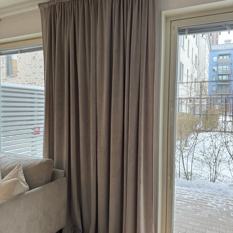 Hej! Jättefina och nya grå mörkläggningsgardiner som blivit över. I orginalförpackning. Det är 3 stycken längder i 140x245 cm.