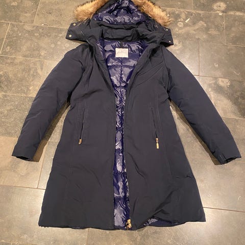 Moncler dunjacka för dam i storlek S. Jackan är svart och fylld med dun enligt inneretikett. Modellen har huva med pälskant, quiltad utsida och längd som går ned över höften. Passar som varm ytterjacka under kallare årstider.