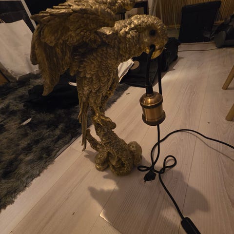 Fin bordslampa ger ett mysigt ljus, svart sladd