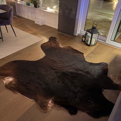 IKEA SKOLD fårskinn i brun färg. Långhårigt fårskinn som kan användas som matta på golv, över en stol eller fåtölj, eller som dekorativt textilinslag i hemmet. 90cm.
