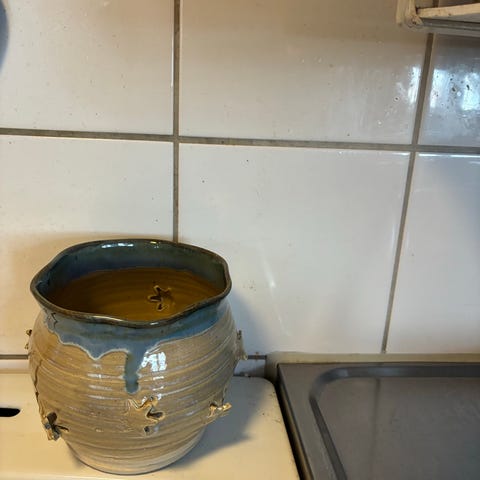 Vacker kruka med patina i oglaserad terrakotta. Klassisk konisk form med dräneringshål i botten. Passar för plantering av inomhus- och utomhusväxter. Krukan är tillverkad i bränt lergods som släpper igenom luft och fukt, vilket gynnar växternas rötter.