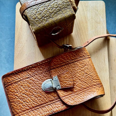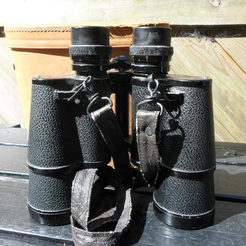 Äldre kikare med fodral