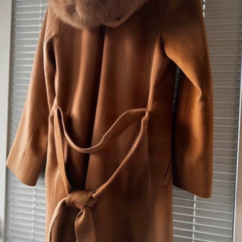 Mycket vacker kappa för den som gillar kvalitet. 100%ull inköpt i vintagebutik på Östermalm. Äkta och avtagbar pälskrage. Puderbeige. Storlek S.