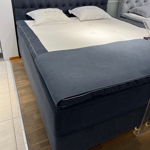 Mörkgrön sammetstyg med gavel. Botten sängen är 2 separata del 70x200 cm. Ny köpt vätsketätt madrasskydd ingår. Stål ben 12 cm, inga fläckar.