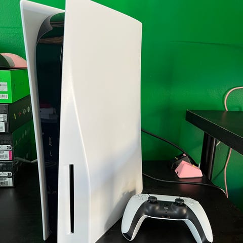 Sony Playstation 5 spelkonsol i vit färg.