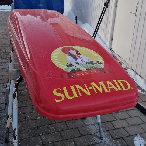 Alpin takbox, inte använd många gånger. Mått :185 cm lång 65 cm bred invändigt.