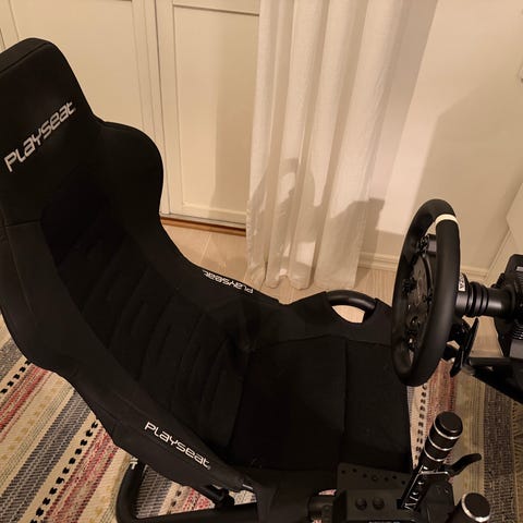 Observera att det enda på bilden som ej medföljer är Streamdeck buttonbox som syns till vänster om ratten.