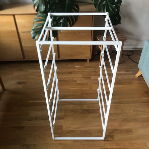 4 st väggskenor för hallsystem från Ikeas BOAXEL 200 cm. Hyllplan finns att köpa till om så önskas.
