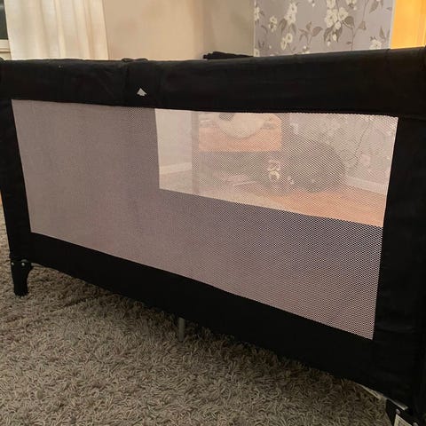 Praktisk resesäng med långsidor i meshmaterial. Perfekt för resan eller som extrasäng.