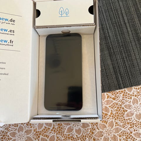 Pedantskött Apple iPhone 13 Pro mobiltelefon med 128 GB lagringsutrymme. Modellen har trippelkamera på baksidan och skärm med helfrontsdesign. Färg: svart.