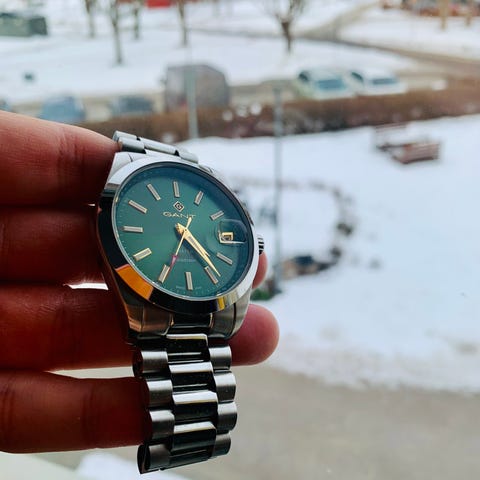 Gant herrklocka med analog urtavla. Klockan har vinröd urtavla och vridring samt matchande vinrött nylonarmband. Kockan är i använt skick men om man byter textilarmbandet blir den som ny!