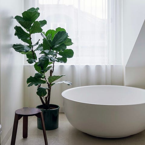 Fiolfikus krukväxt i större storlek med gröna, kraftiga blad. Planterad i en mörk kruka. Passar som inomhusväxt i ljusa rum, exempelvis vardagsrum eller kontor. Växten trivs i indirekt ljus och med jämn vattning utan att stå blött i jorden. Kruka ingår ej fat
