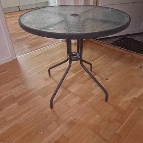 Runt bord med glasskiva i svart ( lite repig)