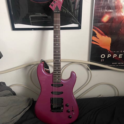 Säljer en Ibanez RG570 MIJ från 1991 i klassiska Purple Neon‑finishen.