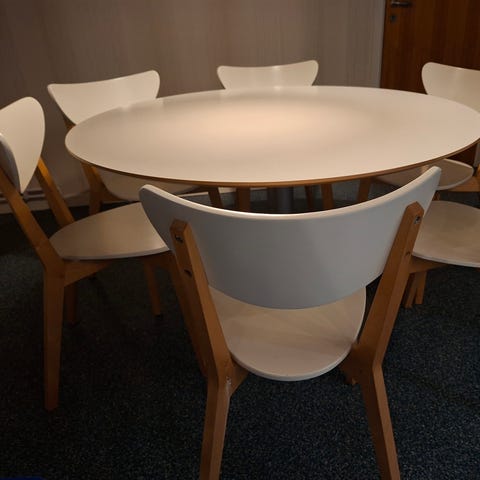 Köksbord med 3st stolar i bra begagnat skick måtten 105x76cm. Pris: 350kr eller pris efter gemensam överenskommelse säljes för Hörby FF loppis och det går bra att komma och titta på bordet.