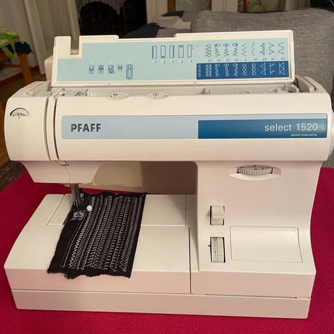 Maskinen köpte jag när den kom ny på marknaden har varit mycket nöjd. Den är lätt att trä ( luft trädd ). Jag har sytt en del bodys till mina barnbarn men nu använder dom inte det längre, därför tycker jag det är synd att maskinen bara står här. Maskinen har aldrig krånglat dock behöver man kanske lite sy vana. Det följer med en bandkantare sl 12-32 mm den som jag tycker blir bäst söm av. ( värde 800 kr ) maskinen ligger i original låda.