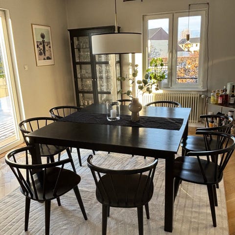 Inköpt på Tibergs möbler. Centrerad iläggsskiva på 45 cm medföljer