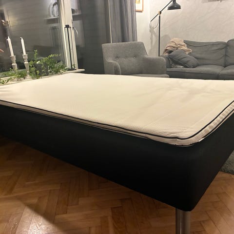Sängen har en svart underdel och är fast/medel