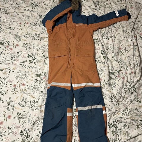 Overallerna är synligt använda men i bra skick. Inga hål eller större skador, alla dragkedjor fungerar. Perfekta som extraoverall till förskola/skola eller lek.