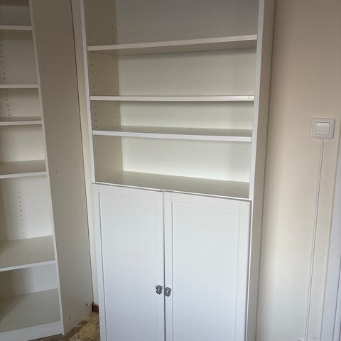 Fina Billy-hyllor - låga modellen - med luckor och push-to-open beslag för smart förvarning.