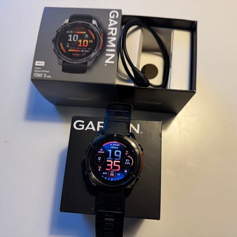 Boxen är från en annan Garmin (Fenix 6 pro ) men medföljer om man vill.