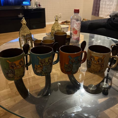 Ca 125 styck ugglor i olika material och storlek.