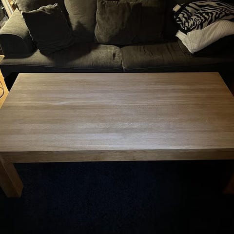 Ben och front på utdragslådan är massiv ek, ovansidan ekfanér