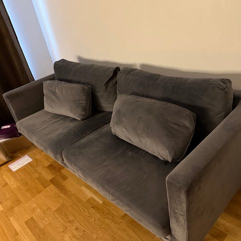 Säljer en tvåsitssoffa för 500kr. Måste hämtas själv på Kungsholmen. Färgen är olivgrön i sammetstyg.